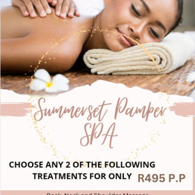 For a complete change of scenery you can visit Summerset Pamper Spa at Summerset Place Country House in Bela Bela. Indulge in our relaxing Spa treatments and rejuvenate your mind, body and soul.